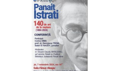 • evenimentul va avea loc joi, 7 noiembrie, începând cu ora 16:30, în Sala „Fănuș Neagu” a Bibliotecii Județene „Panait Istrati” • participă jurnalista Corina Costopol...