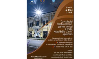 • evenimentul are loc vineri, 6 decembrie, ora 11:00, la sediul central al Muzeului Brăilei „Carol I” • prezintă: prof. univ. dr. Ana Maria Grămescu, cercetător...