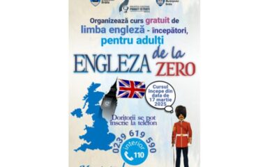 • cursul se adresează adulților, iar întâlnirile vor fi săptămânale • înscrierile se fac la telefon 0239/619.590 (interior 110) sau direct la Punctul de Înscriere de...