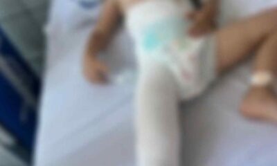 * un copilaș de numai 3 ani zace pe patul de spital, cu picorul în ghips și alte leziuni suferite doar pentru că se afla pe...