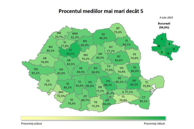 Brăila confirmă, din nou, statutul său de județ fruntaș în educație. După ce la Bacalaureat s-a clasat pe locul 2 la nivel național, același rezultat de top este obținut și la Evaluarea Națională 2025. Cu o rată de promovabilitate de 89,3% înainte de contestații, Brăila se află pe locul al doilea în ierarhia județelor, după Cluj (92,1%) și înaintea Prahovei (88,2%) și Galațiului (86,3%).