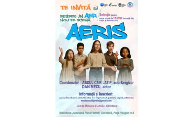 • Biblioteca Județeană „Panait Istrati” Brăila lansează selecția pentru o nouă trupă de teatru pentru copii și adolescenți, „AERIS”, desfășurată în colaborare cu actorul și regizorul Abdul Latip Cair...