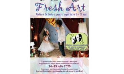 • în zilele de 24 și 25 iulie, la Biblioteca Judeteana „Panait Istrati” Brăila – Secția de Împrumut pentru copii.Ludotecă vor avea loc Atelierele FRESH ART...
