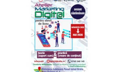 • Biblioteca Județeană ”Panait Istrati” Brăila și agenția See First Marketing relansează Atelierul de Marketing Digital, un program gratuit ce promite să transforme abilitățile digitale în...