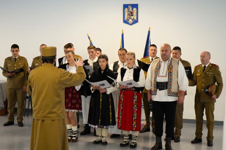 • oaspeții au sosit tocmai din Ardeal • este vorba de grupul de colindători al Batalionului 52 Geniu „Tisa” Satu Mare (unitate a Brigăzii 10 Geniu „Dunărea de Jos” Brăila), coordonat de preotul militar Mircea-Alexandru Câcău și caporalul Romulus-Cezar Fernea