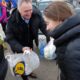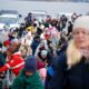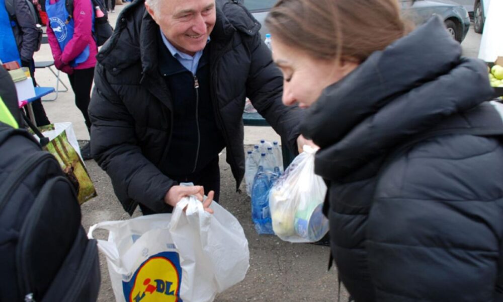 Și înainte, și după ce trec de punctul de vamă, refugiații sunt întâmpinați la Isaccea de voluntari care le oferă alimente, produse de igienă, haine sau pături. Cantități impresionante de donații au venit din toată țara de la români dornici să își ajute vecinii loviți de această nenorocire. Au fost amenajate standuri de unde refugiații se pot servi, gratis, cu tot ceea ce consideră că au nevoie. N-am văzut pe niciunul să ia mai mult decât îi trebuie. Cu mult bun-simț, oamenii se apropie și aleg câte un pachet – două de biscuiți, o banană, un măr, o pastă de dinți sau alte asemenea produse. Lângă o masă încărcată cu de toate, un bărbat cu accent moldovenesc și cu privire blajină, îi atingea încet pe umăr, oferindu-le un pachet cu alimente. ”Cuciș, cuciș!”, îi îmbia omul pe toți refugiații care treceau pe lângă el. Îl cheamă Marcel Sluser și venise, vineri, împreună cu niște prieteni, de la Vaslui. ”Ne-am unit mai mulți, am cumpărat alimente, haine și pături și ne-am hotărât să venim aici, la Isaccea, pentru că ieri am văzut la televizor că e frig și ninge. Puteam merge la Iași, la vama cu Republica Moldova, dar am zis că aici e vreme mai rea și e mai multă nevoie de păturile pe care le puteam oferi. Ne-am instalat la măsuța asta și oferim ce am adus tuturor celor care au nevoie”, ne-a spus vasluianul. L-am întrebat ce înseamnă „cuciș”, cuvântul pe care îl repetă continuu când oferă pachetele. „Nici nu știu, i-am auzit și eu pe alții că spun așa și m-am luat după ei. Sper că e ceva de bine!”, ne-a răspuns el zâmbind. Ne-a mai spus că acasă are posibilitatea să cazeze, pentru o săptămână – două, trei sau patru persoane. ”Ne-am înscris pe listă aici, la ISU, ca să ne repartizeze pe cineva, să-i luăm cu noi când ne întoarcem la Vaslui!”.