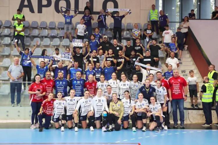 CSM București și HC Dunărea Brăila au oferit un frumos spectacol handbalistic într-o partidă contând pentru etapa a 3-a a turului Ligii Florilor. Un duel în teren și altul în tribună, al galeriilor, a creat o atmosferă de mare derby.