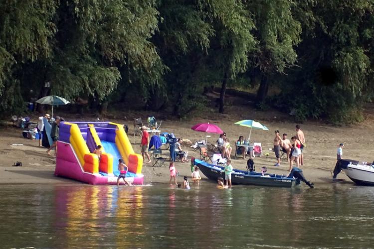 Dunărea începe să scadă, apa s-a încălzit, iar amatorii de plajă şi bălăceală se gândesc şi la diverse modalităţi de petrecere a timpului liber. Chiar dacă malul de vizavi de municipiu nu este amenajat oficial pentru plajă, brăilenii descurcăreți își creează propriile oportunități. Astfel, la sfârșit de săptămână, o familie a montat în premieră, pe malul apei, un ditamai toboganul gonflabil multicolor. De înţeles bucuria copiilor care l-au luat cu asalt! Alături, corturile erau loc de adăpost şi dormit. Mâncarea gătită pe mal şi mesele întinse, umbra pădurii şi chiar pescuitul completau fericit ieşirea în natură.