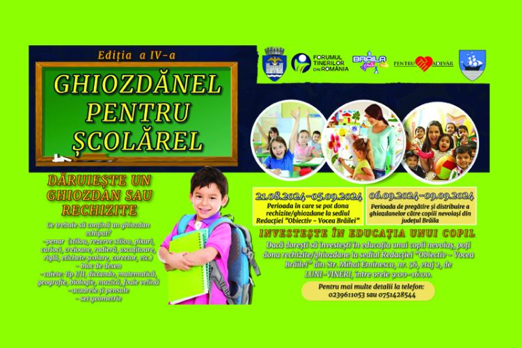Donaţiile pentru campania ”Ghiozdănel pentru şcolărel” au început să vină pe adresa redacţiei. Prin această iniţiativă ne dorim să strângem rechizite școlare pentru a oferi copiilor o șansă la un viitor mai bun, un sprijin de a-și urma visele. Donând rechizite școlare, investim în vitorul unei generații. Fiecare copil merită o educație de calitate, iar rechizitele sunt intrumentele de bază care le permit să își construiască cunoștințele și să își atingă potențialul maxim.