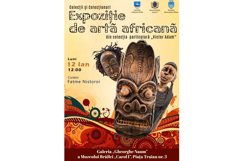 Muzeul Brăilei „Carol I” a organizat luni, 12 ianuarie, ora 12:00, la Galeria „Gheorghe Naum” (Piața Traian nr. 3), un eveniment din seria „Colecții și Colecționari”: Expoziție de artă africană (măști și statuete) din colecția particulară „Victor Adam”, curator al expoziției fiind Fatme Nistoroi.