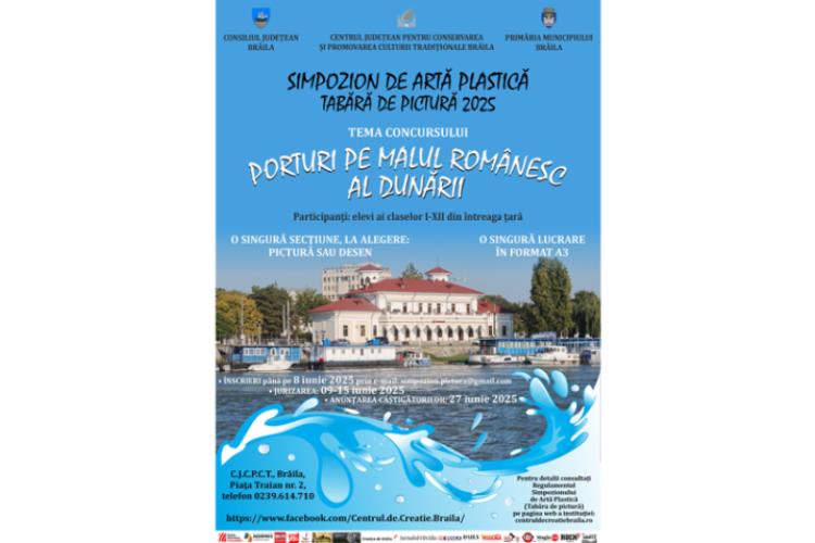 Consiliul Județean Brăila, prin Centrul Judeţean pentru Conservarea şi Promovarea Culturii Tradiţionale, și Primăria Municipiului Brăila organizează, în intervalul martie – iulie 2025, Simpozionul de Artă Plastică (Tabără de pictură), „un prilej pentru participanți de a-și demonstra măiestria, talentul și perseverența în a reuși, o invitație la comunicare doar prin culori, creioane și acuarele”.