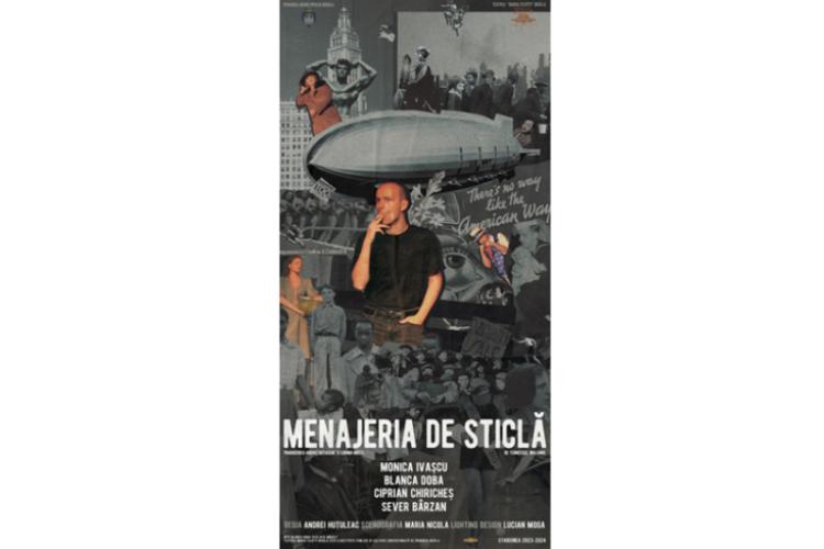 De Tennesee Williams. Durata: 2h 20minute. DISTRIBUȚIA: Amanda – Monica Ivașcu, Tom – Ciprian Chiricheș, Laura- Blanca Doba, Jim – Sever Bârzan. Regia artistică – Andrei Huțuleac, Scenografia – Maria Nicola, Light design – Lucian Moga, Sound & Video design – Sever Bârzan, Regie tehnică – Emanuel Bișa, Lumini – Florin Lazar, Sunet – Marius Cotescu, Operator proiecții – Ștefan Cudălbeanu, Consultant sunet – Sever Andrei, Realizare afiș – Blanca Doba.
