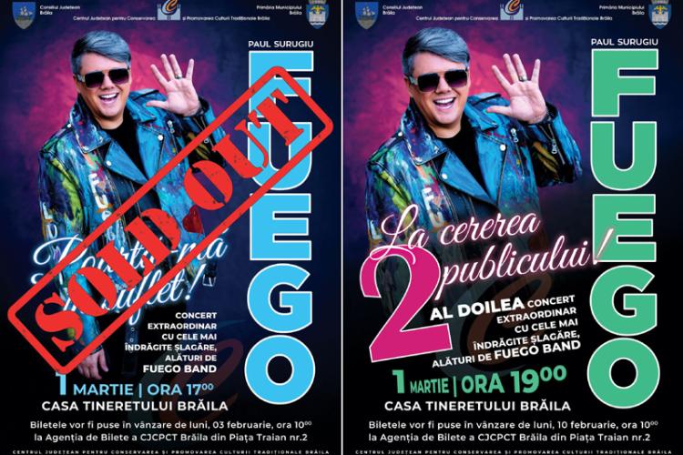 Pe 1 martie, la Casa Tineretului, Paul Surugiu – Fuego va susține două concerte, la ora 17:00 și la ora 19:00, împreună cu a sa „Fuego Band”. Puse în vânzare pe 3 februarie, la Agenția de Bilete a Centrului Județean pentru Conservarea și Promovarea Culturii Tradiționale (Centrul de Creație) Brăila, din Piața Traian nr. 2, biletele pentru primul concert s-au epuizat rapid. Biletele pentru cel de-al doilea concert Fuego au fost puse în vânzare începând de ieri, luni, 10 februarie. După cum ne-a declarat conducerea Centrului de Creație, ieri după-amiază încă mai erau disponibile bilete.