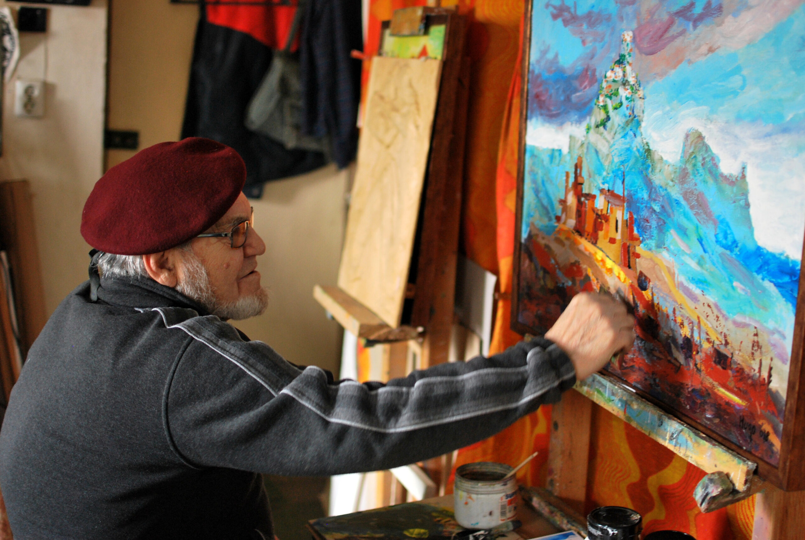 Înconjurat de sute de lucrări, maestrul Hugo Mărăcineanu – descendentul eroului de la Griviţa, de la 1877 – se încăpăţânează, mai abitir, să creeze. Nu pentru acum, ci pentru eternitate. Artistul – rămas orfan de tată în adolescenţă şi sprijinit la studii de mama sa, cu pensie de CAP de 45 de lei – pictează acum în frig, pentru că nu-şi permite luxul caloriferului: “Impozitul pe atelier, taxa la uniune, curentul şi întreţinerea îmi iau o pensie. Îmi mai rămân 11 pensii pe an”, ne spune, înainte de a ne arăta  cu pasiune picturile, sculpturile şi desenele pe care le-a realizat – dar şi o icoană mai deosebită din atelier (“Icoana asta am adunat-o de la gunoi; era făcută bucăţi!”). Apoi ne recită cu mult patos din Eminescu, pentru că este îndrăgostit de “Luceafărul poeziei româneşti”