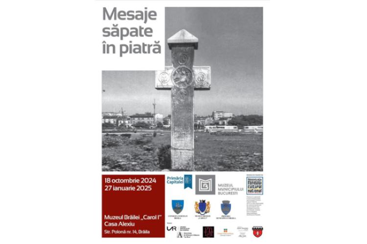 Muzeul Brăilei „Carol I” şi Muzeul Municipiului București îi invită pe brăileni la vernisajul expoziției „Mesaje săpate în piatră”, eveniment care va avea loc vineri, 18 octombrie, ora 11:00, la Casa Alexiu (monument istoric) din Strada Polonă nr. 14.