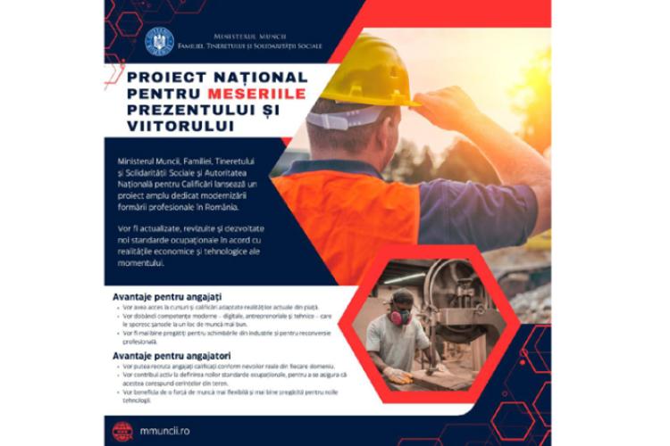 Proiect național pentru meseriile prezentului și viitorului, implementat de Ministerul Muncii, Familiei, Tineretului și Solidarității Sociale (MFTSS).