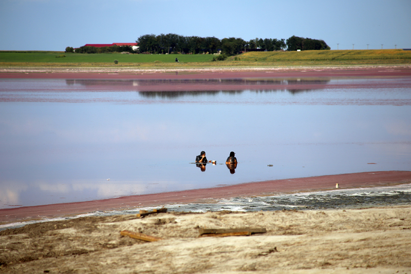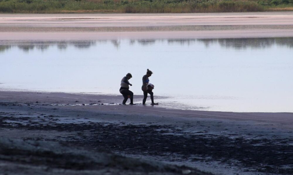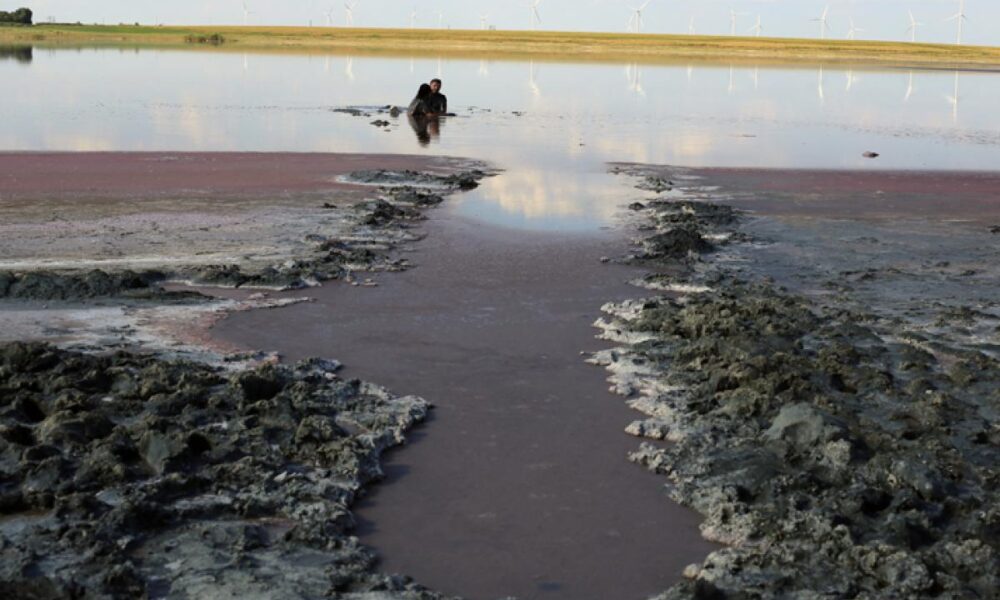 • lacul sărat de la Movila Miresii aproape a secat din cauza căldurii, iar concentrația mare de Artemia Salinalis, crustaceul care face minuni pentru sănătate, dă o tentă roșiatic-cărămizie întiderilor de nămol uscat și de sare rămase printre puținele ochiuri de apă • de 35 de ani, construirea unei stațiuni balneare pe malul lacului se află tot în stadiul de proiect • asta nu-i descurajează, însă, pe cei care știu despre proprietățile terapeutice extraordinare ale nămolului de aici