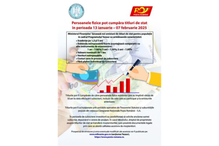 Prospectul de emisiune și orice eventuale modificări ale acestuia sunt publicate la secțiunea Datorie publică, www.posta-romana.ro.