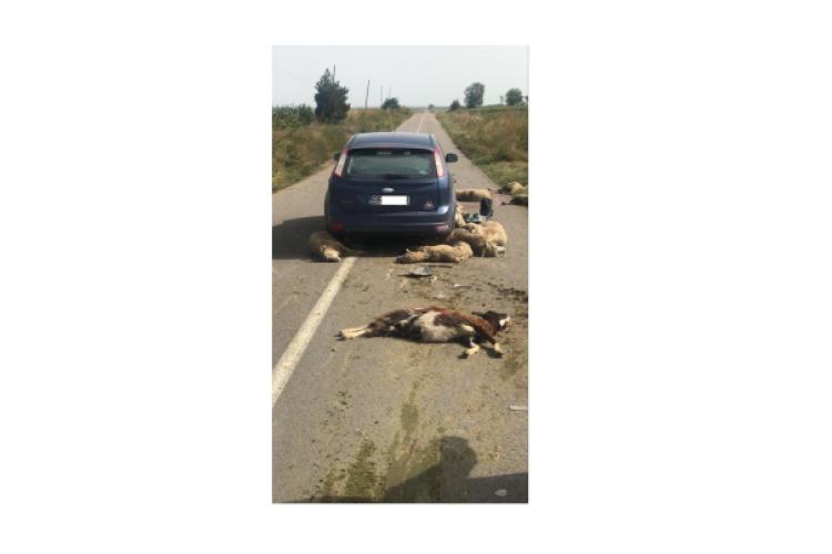 * accidentul s-a produs ieri, în jurul prânzului * mașina era condusă de o tânără de 25 de ani * au fost lovite mai multe ovine, care au decedat, iar persoana care avea oile în supraveghere a fost amendată