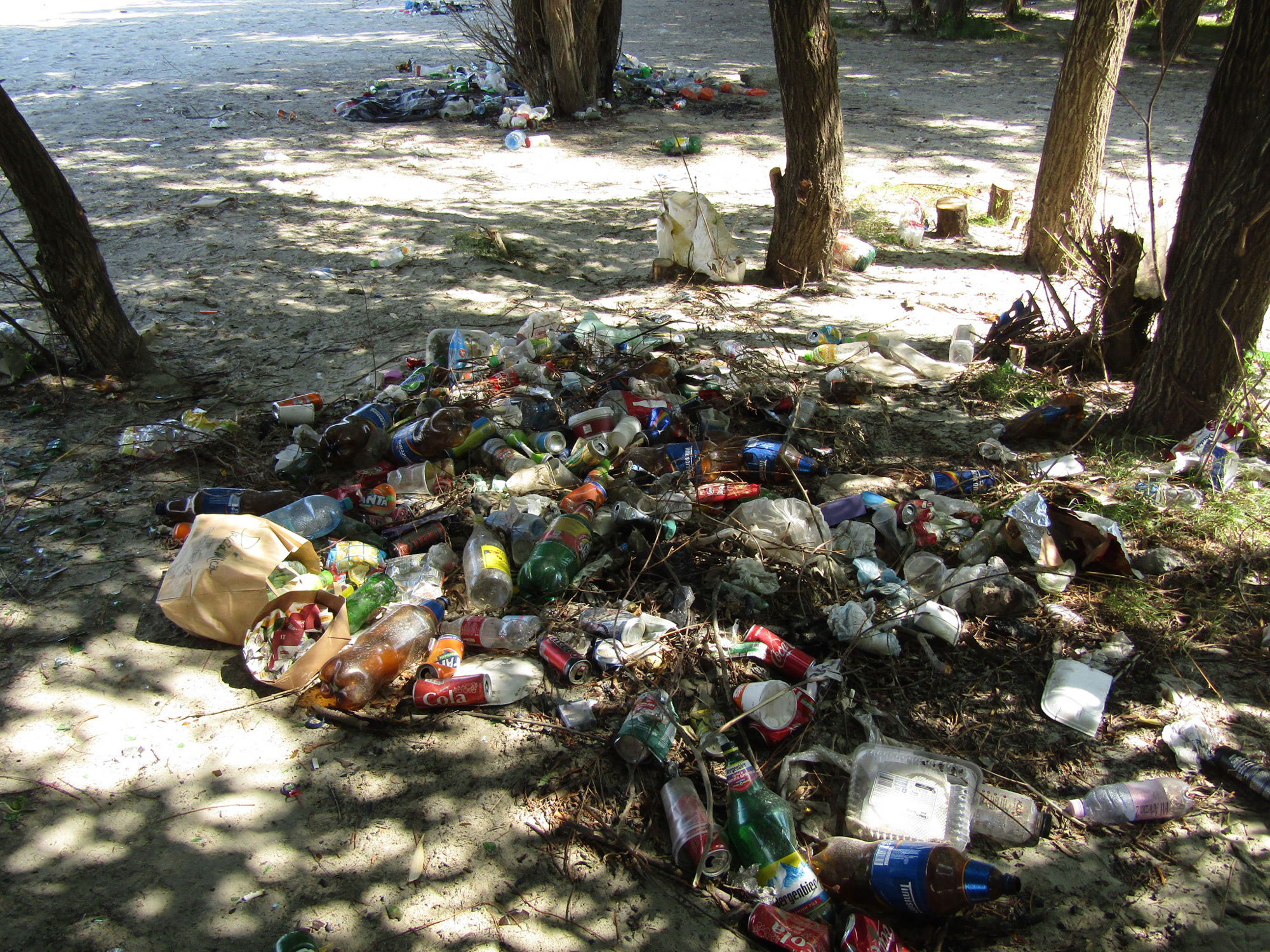 Nimic rău până aici, dar cel mai necivilizat aspect, îi putem spune chiar nesimțire, este faptul că majoritatea celor veniți la o “plajă” gratis și neamenjată lasă după ei mormane de gunoi, resturi menajere, doze, PET-uri, tacâmuri din plastic, sticle și alte deșeuri. Iar lucrurile nu se opresc aici, fiindcă, în familie sau grupuri mari, au loc și chefuri cu muzică, însoțite de multe ori de adevărate focuri de tabără. Asta fără să se țină cont că pădurea este la doi-trei metri și oricând poate izbucni un incendiu, așa cum s-a întâmplat, de altfel, în urmă cu doi – trei ani. Iar pe această secetă urmările pot fi catastrofale, mai ales că pompierii ajung foarte greu aici, depinzând de bacuri pentru a trece autospecialele de stingere peste Dunăre, apoi având de furcă cu hățișul pădurii. Însă pentru cei lipsiți de bun simț nu contează aceste aspecte. Unii pătrund în pădure cu mașinile, în ciuda șanțurile adânci făcute de Romsilva și fără să țină cont de panourile de avertizare. Panouri care sunt în mare parte vandalizate… Tupeiștii și-au croit un drum printre copaci, dinspre digul  Insulei Mari, spre Dunăre.