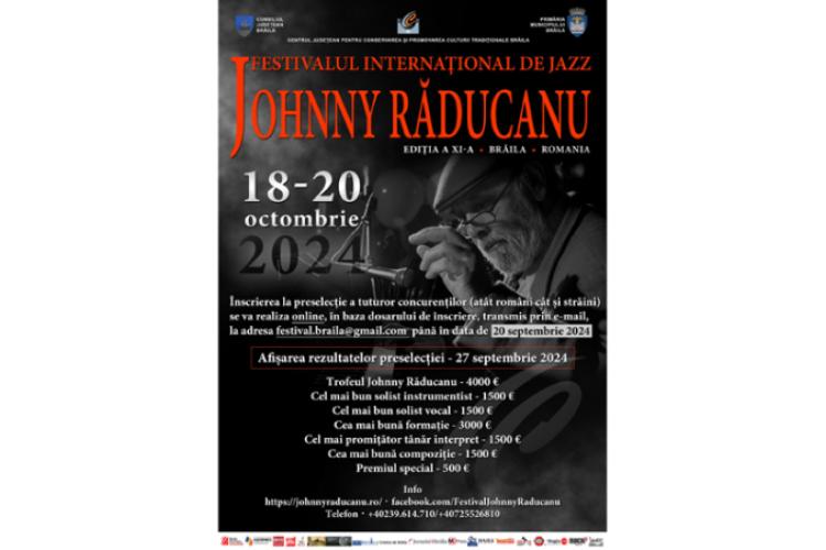 Organizat de Consiliul Județean Brăila, prin Centrul Județean pentru Conservarea și Promovarea Culturii Tradiționale Brăila, Festivalul Internațional de Jazz „Johnny Răducanu” – Ediția XI-a 2024 are loc în perioada 18-20 octombrie 2024, la Casa Tineretului. Organizat „în scopul omagierii ilustrului brăilean Johnny Răducanu, a perpetuării operei sale, a personalității sale artistice distincte”, festivalul urmărește, de asemenea, descoperirea și promovarea noilor talente interpretative. Pe toată durata festivalului au loc recitaluri de jazz prin care tinerii concurenți și publicul vin în contact cu nume consacrate ale genului. Festivalul se desfășoară pe două secțiuni: concurs și recitaluri susținute de artiști prestigioși ai genului.