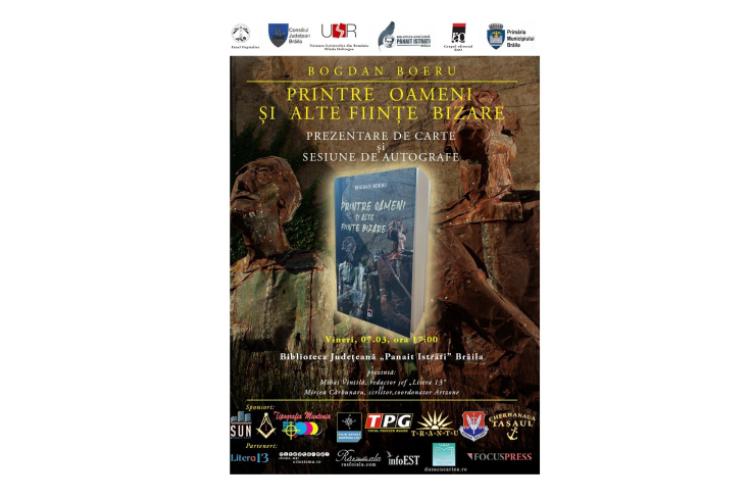 Biblioteca Județeană „Panait Istrati” Brăila îi invită pe iubitorii de lectură vineri, 7 martie, începând cu ora 17.00, la lansarea cărții „Printre oameni și alte ființe bizare”, autor Bogdan Boeru.