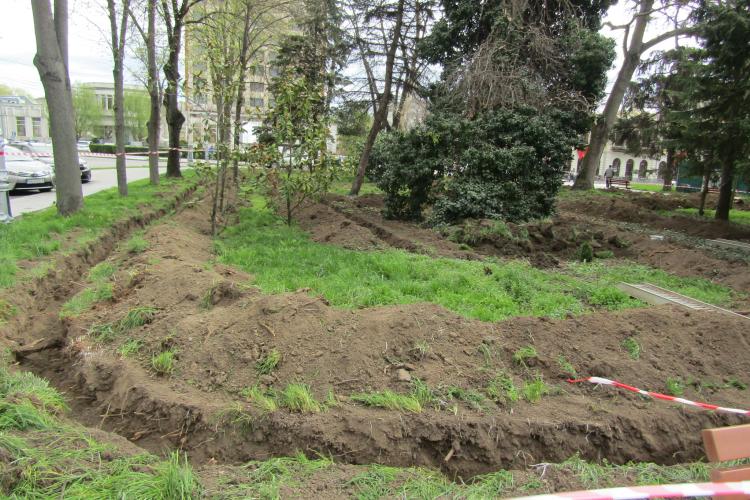 La fața locului, odată cu săpăturile pentru conducte şi extragerea unor rădăcini/trunchiuri de la câţiva arbori, au ieşit la iveală fundaţii din beton şi resturi de la stâlpii din fontă care au funcționat în urmă cu peste o sută de ani, când a luat fiinţă Piaţa Traian.