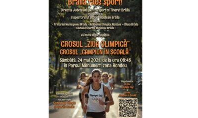 • brăilenii pot participa la crosurile “Campion în Școală” și “Ziua Olimpică” pe 24 mai 2025, începând cu ora 8:45 “Sâmbătă, 24 mai, transformăm Parcul...