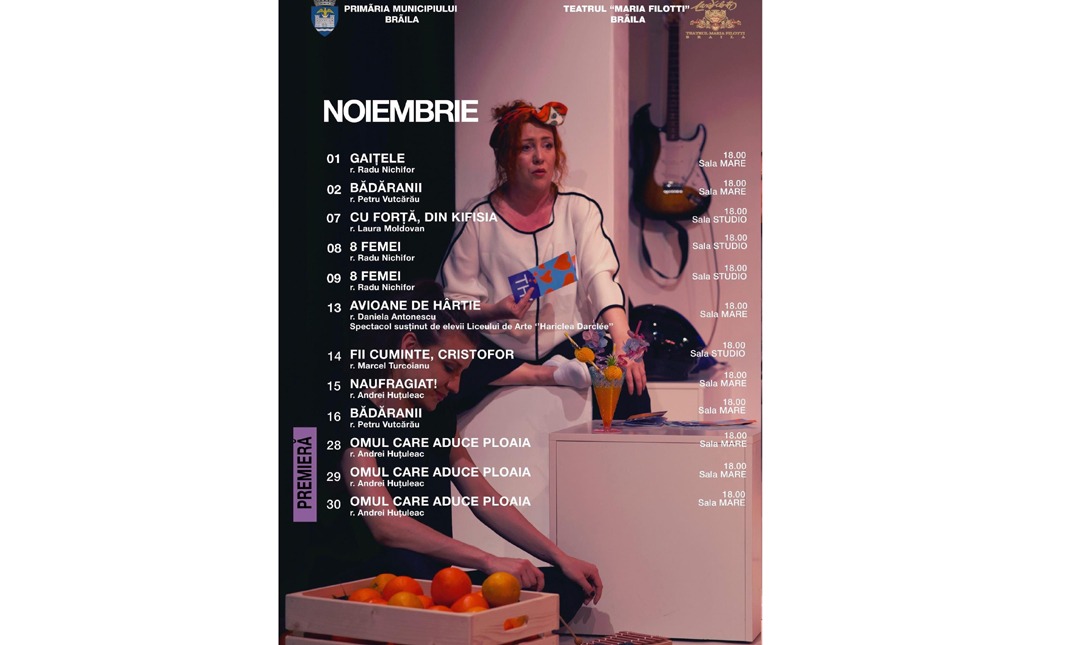 Teatrul ”Maria Filotti” – Programul spectacolelor din luna noiembrie
