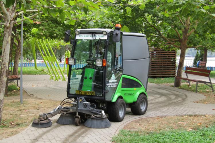 De luna trecută, patru utilaje, de capacităţi diferite, sunt folosite la aspirarea prafului şi frunzelor de pe trotuare, în locurile de joacă pentru copii cu tartan, pe carosabilele asfaltate, şi, foarte important, pe aleile înguste. Aceste utilaje aparţinând firmei “Polaris” din Constanţa lucrează îndeosebi ziua, când vizibilitatea este maximă, dar pot fi folosite şi noaptea.