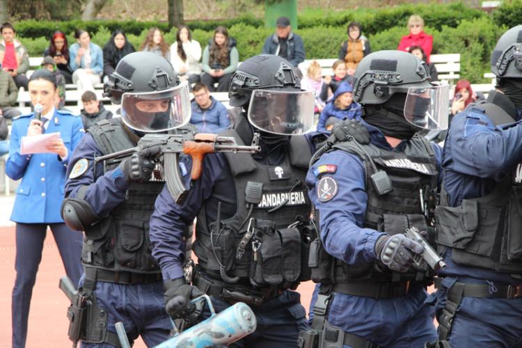 Elevii, fie ei mai mari sau mai mici, au putut studia aparatura din dotarea jandarmilor, autospecialele de intervenție, iar câinii de serviciu, implicați în exerciții de intervenție, au fost cei mai admirați.  A fost simulată și intervenția unui echipaj de acțiuni speciale antiteroriste, duba jandarmilor a venit cu semnalele acustice și luminoase în funcțiune, iar scandalagiii au fost liniștiți și săltați de forțele de ordine. Echipamentele și tehnica de intervenție utilizate în misiuni au atras atenția celor prezenți, dar exercițiile de autoapărare și intervenția echipajului de acțiuni speciale antiteroriste au arătat că jandarmii sunt pregătiți să intervină în situații critice, pentru restabilirea ordinii și liniștii publice.