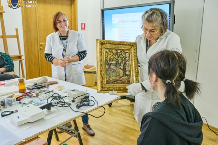Astfel, în prima parte a zilei, elevilor clasei a XI-a B a Liceului de Arte „Hariclea Darclee” Brăila, însoțiți de prof. Alexandra Dinu, li s-au prezentat, în cadrul Laboratorului de restaurare pictură, formele de degradare și etapele intervențiilor de restaurare a două picturi. În partea a doua a zilei, elevilor din clasa a VII-a B, de la aceeași unitate de învățământ, însoțiți de prof. Elisabeta Pătrașcu, li s-au prezentat factorii de degradare și influența acestora asupra obiectului de patrimoniu, precizează organizatorii evenimentului cultural.
